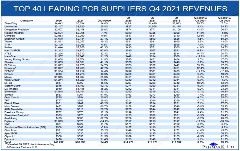 ky开元科技位列2021年Q4全球40强PCB企业第22名