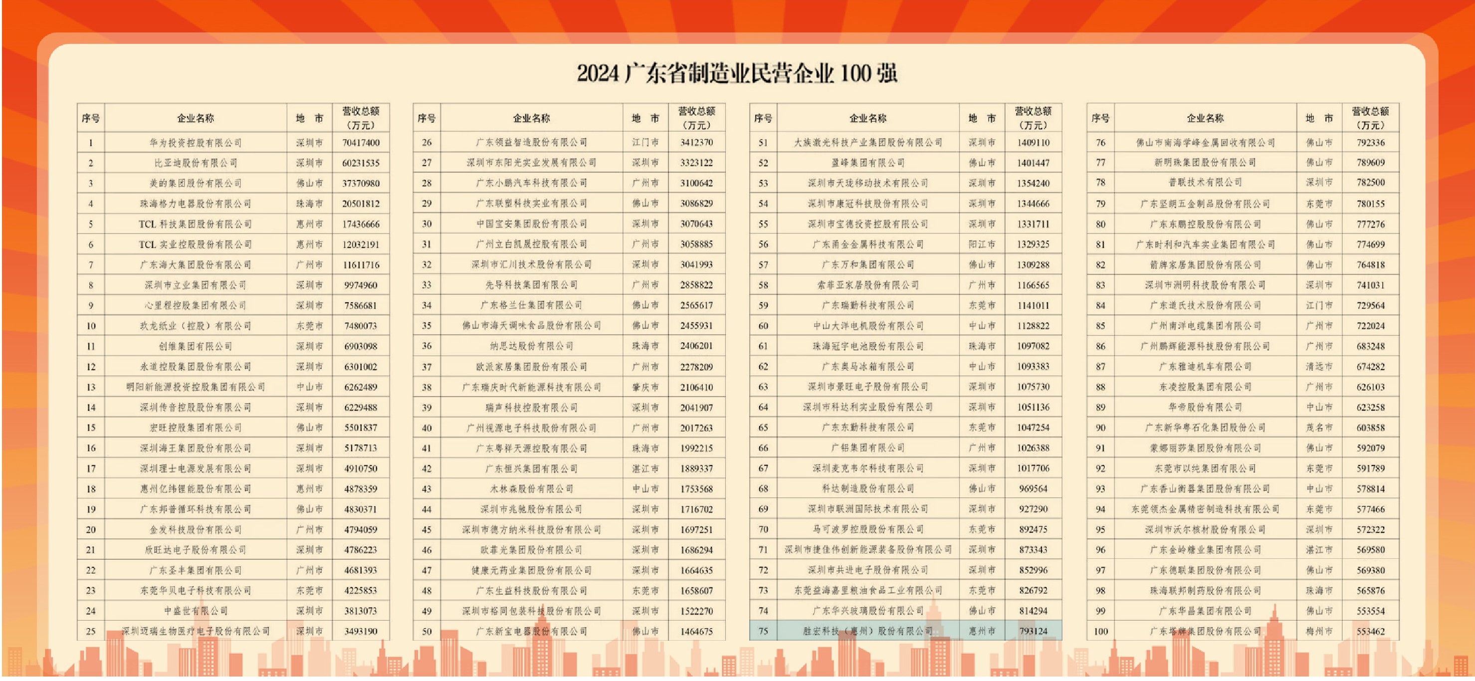 ky开元科技荣登2024广东省制造业民营企业100强榜单