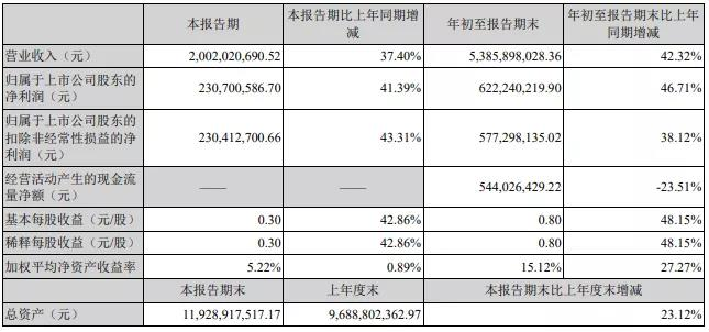 喜报!公司前三季度实现营业收入53.86亿元,同比上升42%
